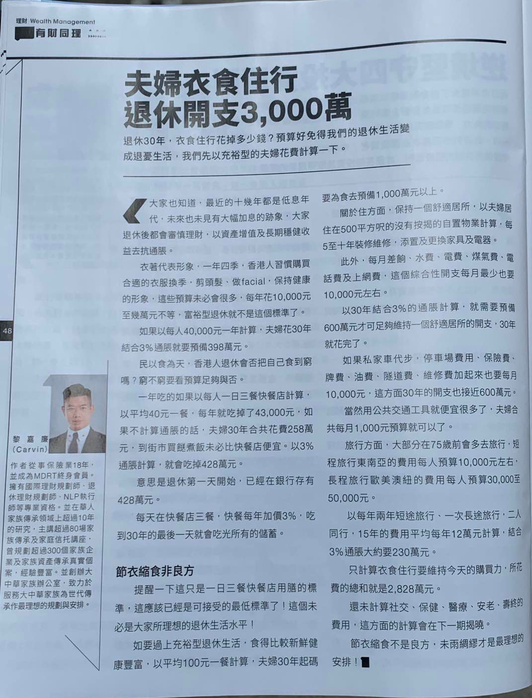 只計算衣食住行要維持今天的購買力,所花費的總和就是2,828萬。還未計算社交、保健、醫療、安老、壽終的費用,這方面的計算會在下一版揭曉, 節衣縮食不是良方,未雨綢繆才是最理想的安排!
